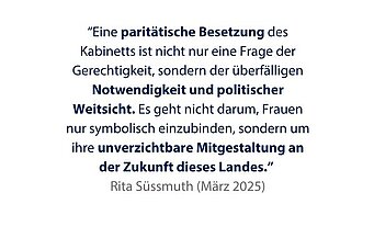 Frankreich führte 2001 ein Paritätsgesetz ein, das auf kommunaler und regionaler Ebene große Wirkung zeigte. Seitdem wird auch in Deutschland über ähnliche Regelungen diskutiert. Der Deutsche Frauenrat, Landesfrauenräte, Kirchen, Gewerkschaften und viele zivilgesellschaftliche Akteure unterstützen die Forderung. Die Initiative „#ParitätJetzt!“ der ehemaligen Bundestagspräsidentin Rita Süßmuth fand bundesweit Beachtung.